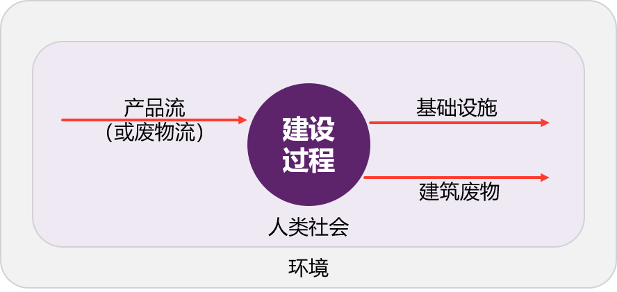 生产固定基础设施产品的过程通常被称为建设过程(图 11)。在数据库中,基础设施产品的参考单位通常是“个”,例如 1 个发电厂。建设过程通常涵盖基础设施的初建、使用寿命内的维护、土地占用和土地转型(如适用),以及在使用寿命结束时的退役和废物处理。退役基础设施的废物流以副产品或废物输出的形式离开建设过程。基础设施的质量也随废物流一同离开建设过程。因此,基础设施产品在质量和碳属性方面与众不同。虽然基础设施产品不具备质量属性,但是其具有“使用寿命”和“寿命容量”属性。
