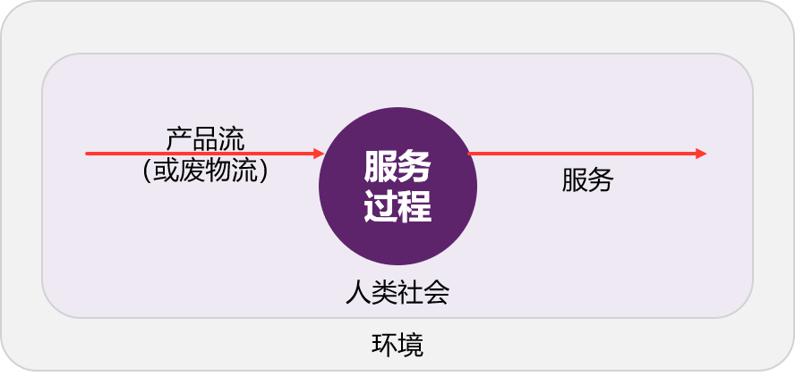 服务过程包括为另一产品提供服务所需的输入和输出,但这一过程本身不涉及被服务产品的输入和输出(图 12)。因此,服务被定义为非物质交换,即没有实际物品的所有权转移。例如,使用电锯锯木的服务并不涉及将森林中自然生长的树木作为输入。相反,林业过程则明确地将森林中的树木作为输入,同时电锯的工作时长(小时)也被作为其输入,该过程的输出则是砍伐下来的树木。电锯的数量、操作所需的燃料、维护所需的润滑油以及操作过程中释放的排放物都通过服务过程间接进入林业过程。
