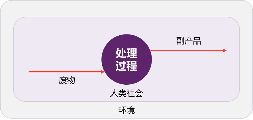 废物可以通过处理过程转换成有价值的产品(产品流)或释放到环境中的排放(基本流)。当废物转化为有价值的产品时,处理过程具有较强的回收利用属性,例如对用过的食用油进行净化处理、并作为原材料生产生物燃料。当废物转化为释放到环境中的排放时,处理过程具有较强的最终处置属性,例如处理污染废水以获得无污染的水、然后排到河流中。